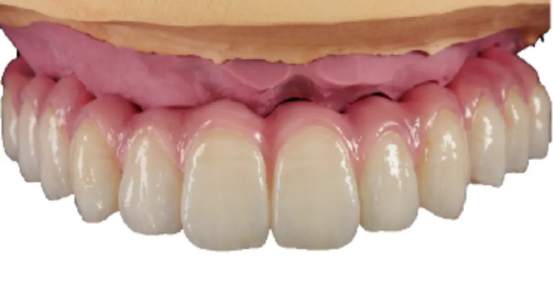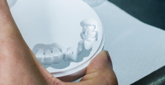 经计算机辅助设计与制造设备切削加工后烧制,形成牙科修复物形状。